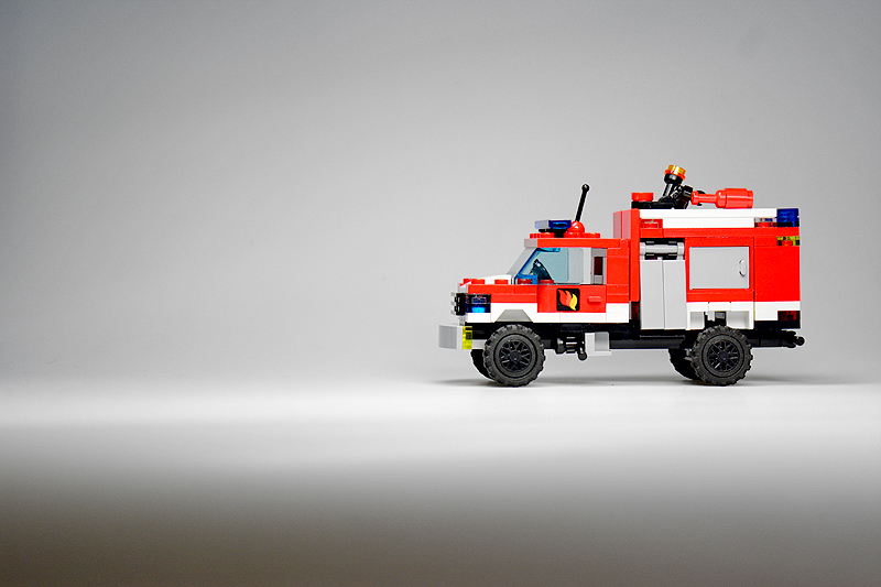 Nachdem das Fahrgestell stand, sollte das Fahrzeug zunächst in den Fuhrpark der städtischen Feuerwehr eingereiht werden. Als Sonderlöschmittelfahrzeug. Bei feuerwehren in großen Metrolpolen, z. B. München ist ein Fahrzeugtyp durchaus anzutreffen. Aufgrund der sich immer hochbeiniger gestaltenden Silhouette war es für die BF nicht mehr das Einsatzmittel der Wahl. Also, Flughafen. Da fielen mir eben diese weitverbreiteten RIVs ein. Das Profil erscheint äußerst kompakt, extrem geländegängig, damit gut proportioniert und in der optischen Gesamtaufmachung äußerst bullig. Gleiches wollte ich auch hierbei erreichen. Dabei immer die Bespielbarkeit und die Positionierung einer behalten Minifig hinter dem Steuer. Ich hoffe, all das ist mir, trotz meiner selbststeckten Anforderungen, geglückt. Das mag nun der geneigte Leser entscheiden. Aber, ich lass das jetzt so. 😉